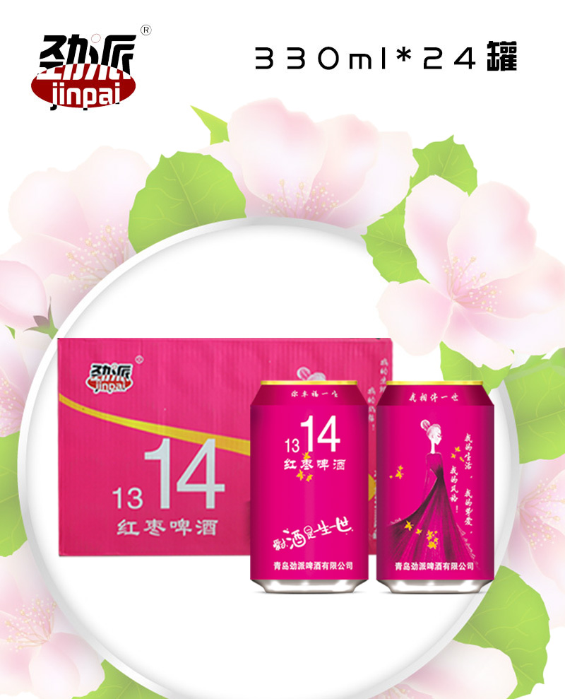 产品名称:青岛劲派一生一世青春系列红枣啤酒 规格:330ml*24罐