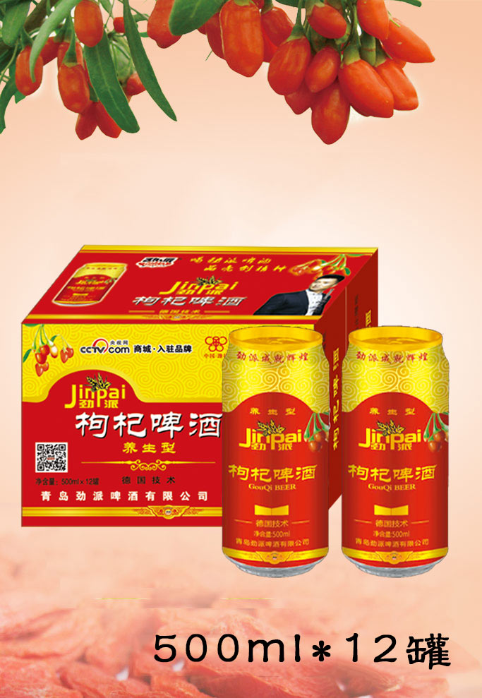 产品名称:青岛劲派枸杞啤酒 规格:500ml*12罐