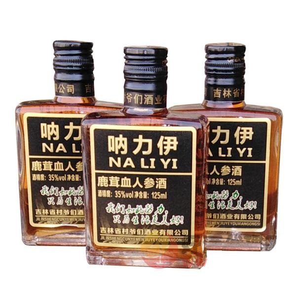 呐力伊鹿茸血人参酒35度125ml是由吉林省村爷们酒业有限公司经营的白酒 系列产品,现面向全国诚招代理商!呐力伊鹿茸血人参酒35度125ml采用独特工艺精心酿制而成,酒质优良,醇馥幽郁,深受消费者喜爱。