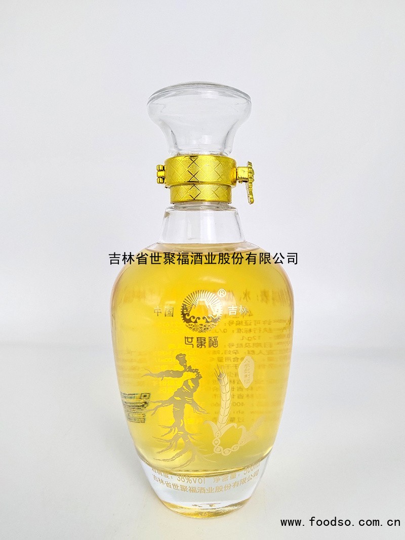 产品特点:以本公司生产优质清香大曲酒为基酒,外加优质矿泉水、东北特有的人参、枸杞、冰糖、蜂蜜为原料,用现代化设备进行酶解、萃取,经90天陈贮,严格检测,精制而成,深受广大消费者的青睐。