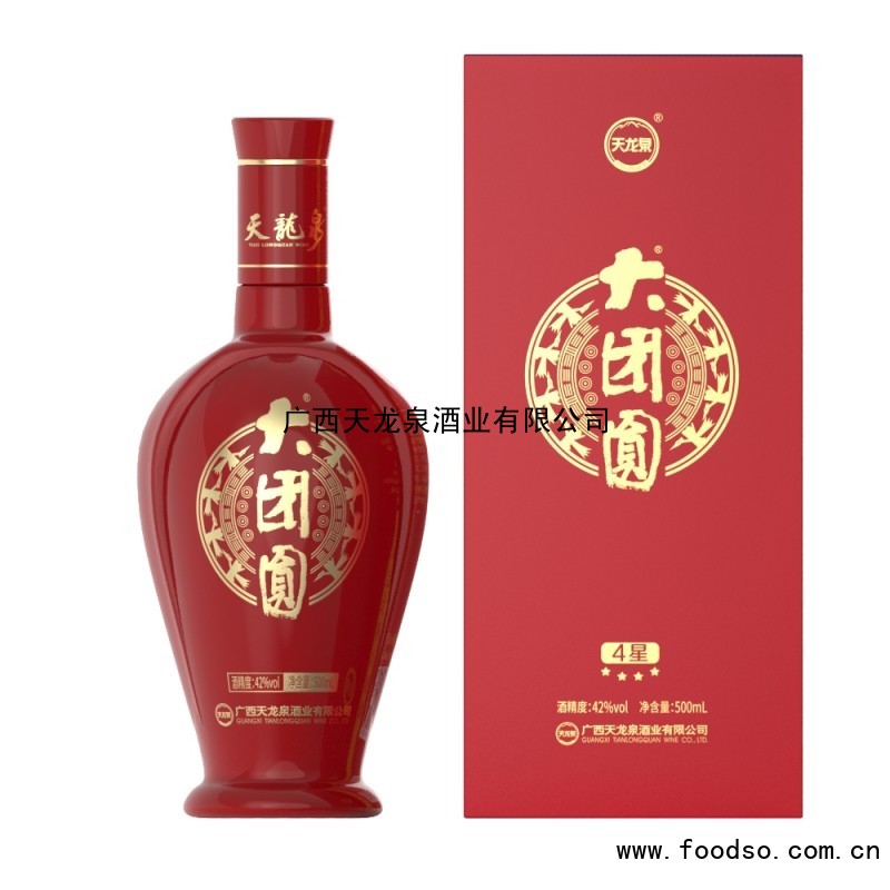 天⻰泉·⼤团圆产品采⽤ 6 年以上酱、⽶陶缸原酒,同时融⼊多 味草本精华为健康赋能,带来了酱⽶谐调,复合幽雅,绵柔圆润和饮 后舒适度⾼的消费体验。