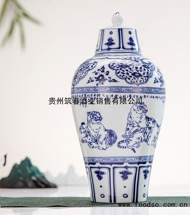 筑春五福临门(2.5L)采用酒龄15年以上的优质大曲坤沙酱酒为基酒通过小批量勾调,传承筑春酒厂传统工艺,精心制造的一款值得收藏送礼品鉴的酱香酒。容器采用中国典型的元青花烧制工艺,由景德镇市宫廷研究所监 制,国酒国瓷,具有收藏价值和属性。