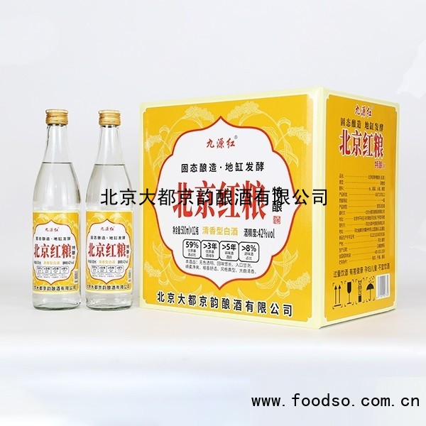 九源红北京红粮清香型42度500mlx12瓶是由北京大都京韵酿酒有限公司经营的蒸馏酒->白酒系列产品,该产品精选优质的高粱、小麦、玉米等食材,经过传统工艺酿造而成,采用传统发酵工艺,将粮食进行粉碎、蒸煮、冷却、发酵,确保酿造而成的酒干净清澈、酒体醇厚、口感细腻、醇香自然、回味悠长。请将该产品置于阴凉干燥处储存,以免潮湿的环境对酒的品质造成影响,这款白酒的适饮温度在20℃左右,请在合适的温度下饮用,口感更佳。该产品是源自于中国古老工艺的珍贵美酒,我们致力于为消费者提供优质白酒,期待与您共同品味这款独特的美酒。
