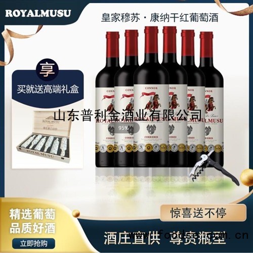 【法国进口红酒】皇家穆苏·康纳干红葡萄酒750ml是由山东普利金酒业有限公司生产,是葡萄酒知名品牌,山东普利金酒业有限公司采用国内外先进的酿酒工艺精心酿造。【法国进口红酒】皇家穆苏·康纳干红葡萄酒750ml净透明,口感香醇、淡雅,回味悠长。适合中国人体质和饮用习惯,现面向全国各地诚招代理商。