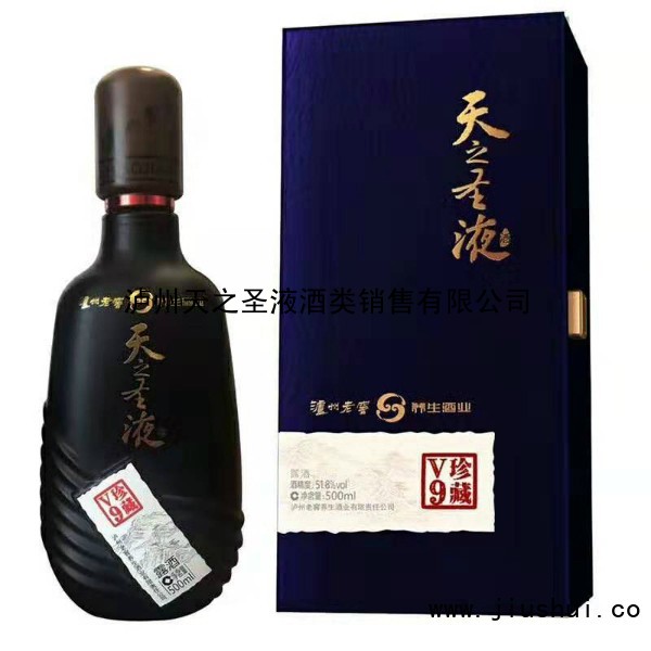 天之圣液(珍藏V9)是泸州天之圣液酒类销售有限公司主营的招商产品,天之圣液(珍藏V9)清洌甘醇,刚柔相济,如谦谦君子,儒雅大气。有陈香幽雅、甘绵醇厚之“柔”,亦有工艺严格、酿造讲究。天之圣液(珍藏V9)的同类产品有,天之圣液(珍藏V9),天之圣液(珍藏V5)等,如果您想了解更多天之圣液(珍藏V9)详情,请联系泸州天之圣液酒类销售有限公司。